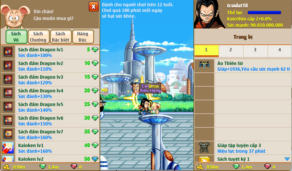 + Trong thế giới ngọc rồng có rất nhiều kẻ mạnh, bạn có thể chính minh sức mạnh của bạn tại Giải siêu hạng, với các đối thủ mạnh không kém